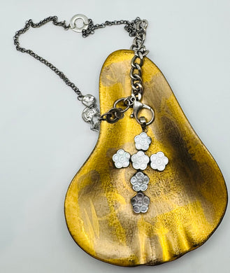 Most of our statement piece necklace's are one of a kind. They are made of vintage aspects from different eras, states and countries.