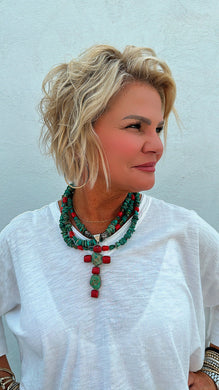 Most of our statement piece necklace's are one of a kind. They are made of vintage aspects from different eras, states and countries.
