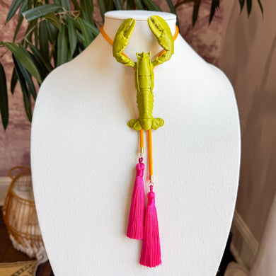 Crawfish Lobster Necklace Bolo Olive Green with Golden Yellow & Fuchsia