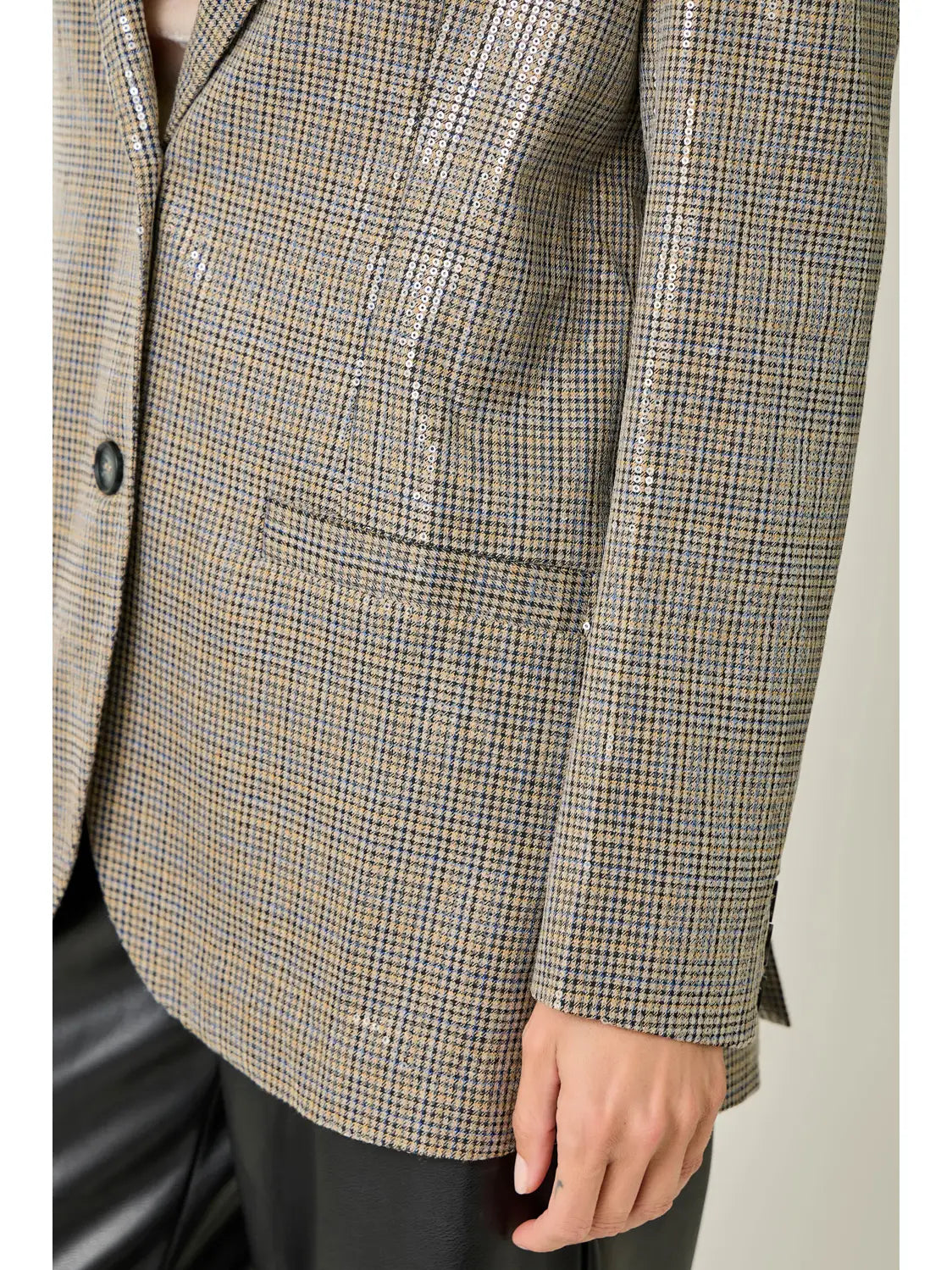 Get ready to turn heads all night long in this show-stopping sequin blazer that's pure glamour from every angle. Oversized tailoring gives you that effortlessly chic silhouette while clear sequins catch the light with every move, creating an eye-catching sparkle that demands attention. The double-button front keeps things polished and put-together, while functional front pockets mean you can actually carry your essentials without sacrificing style. Double back slits add movement and flair, perfect for dancing, walking, or simply making an entrance. Whether you're hitting the dance floor, attending a special event, or just feeling fabulous, this blazer transforms any outfit into something unforgettable. Layer it over a slip dress, pair it with tailored trousers, or wear it solo—the sequins do all the talking.