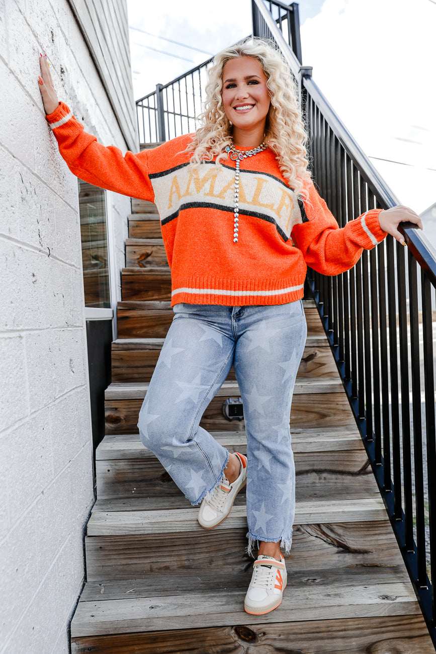 Embrace effortless style with the Amalfi Coast Sweater, crafted from a cozy blend of 76% polyester, 10% nylon, 10% acrylic, and 4% wool. This vibrant sweater features cheerful shades of orange, yellow, cream, and gray, perfect for brightening up any day. Whether layered over your favorite top or simply thrown on for a quick outing, it’s designed to keep you comfortable and looking lively wherever you go. The playful colors and soft fabric make it a go-to piece for easy, breezy style on the move.