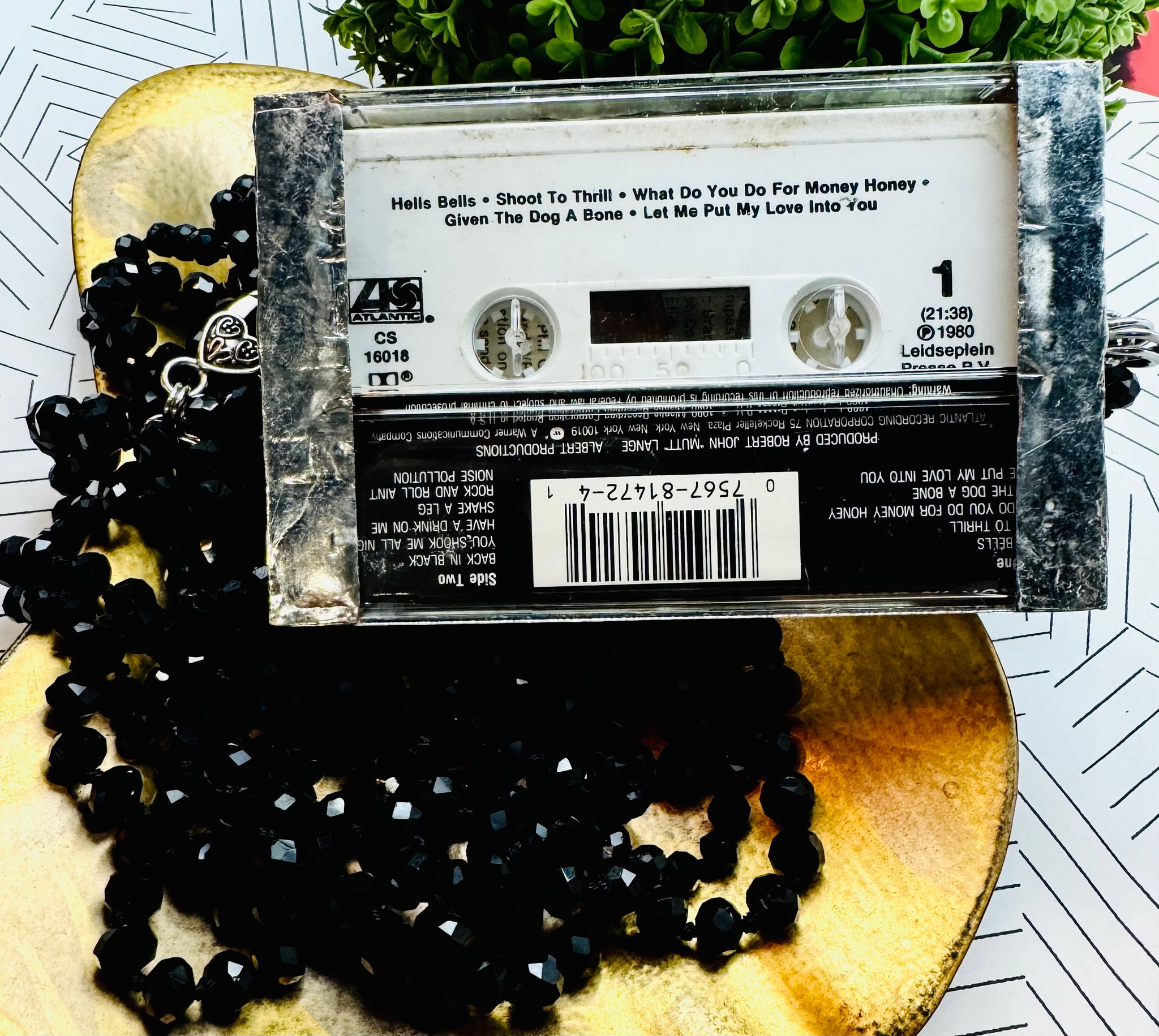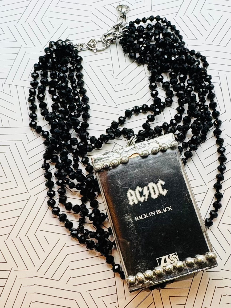 Take your love for music to the next level with our BLACK IN BLACK cassette necklace! Featuring an original cassette and case from the AC⚡️DC Black In Black soundtrack, this necklace is perfect for any hardcore rock fan. The shiny multi-strand black beads add a touch of sophistication to this quirky piece.