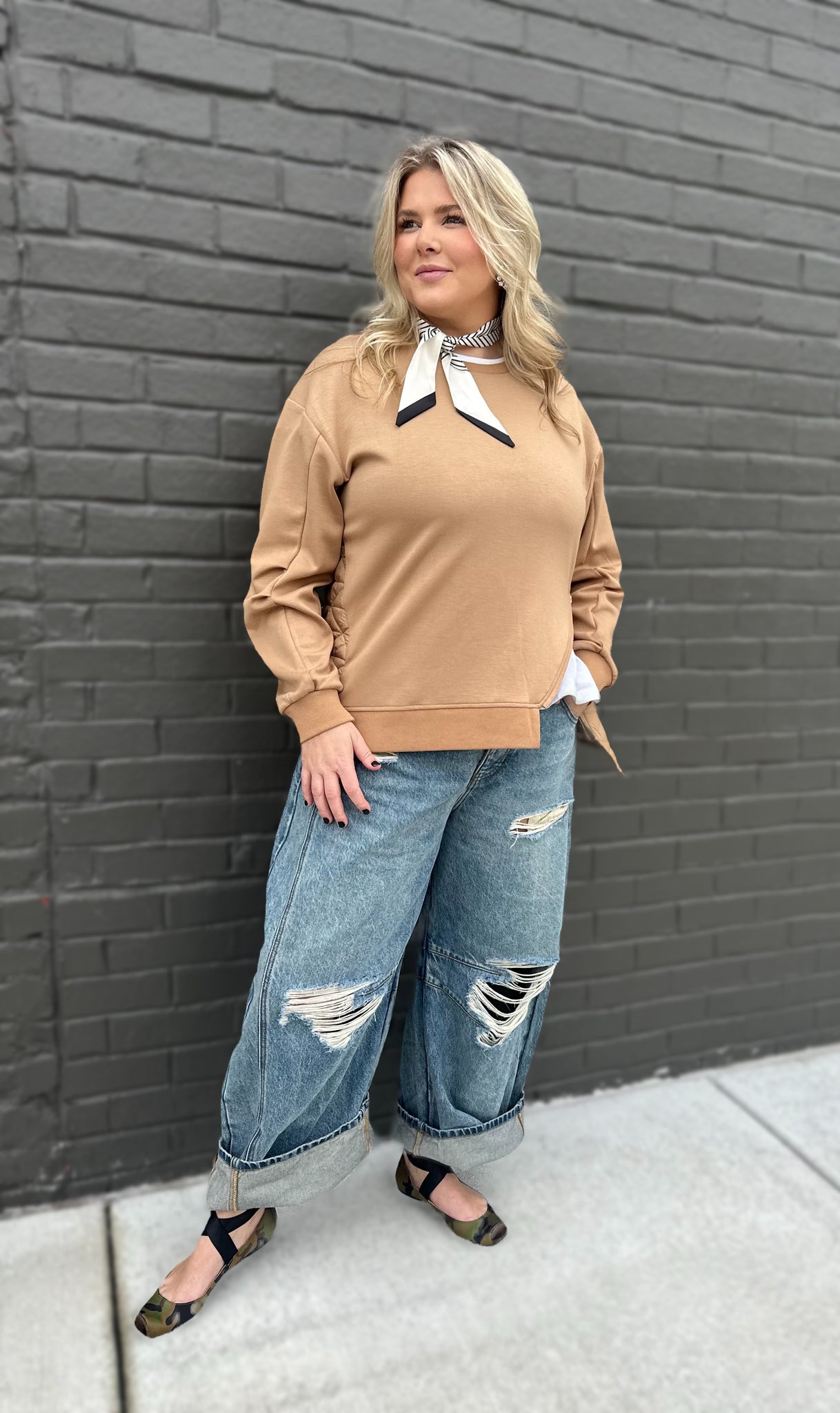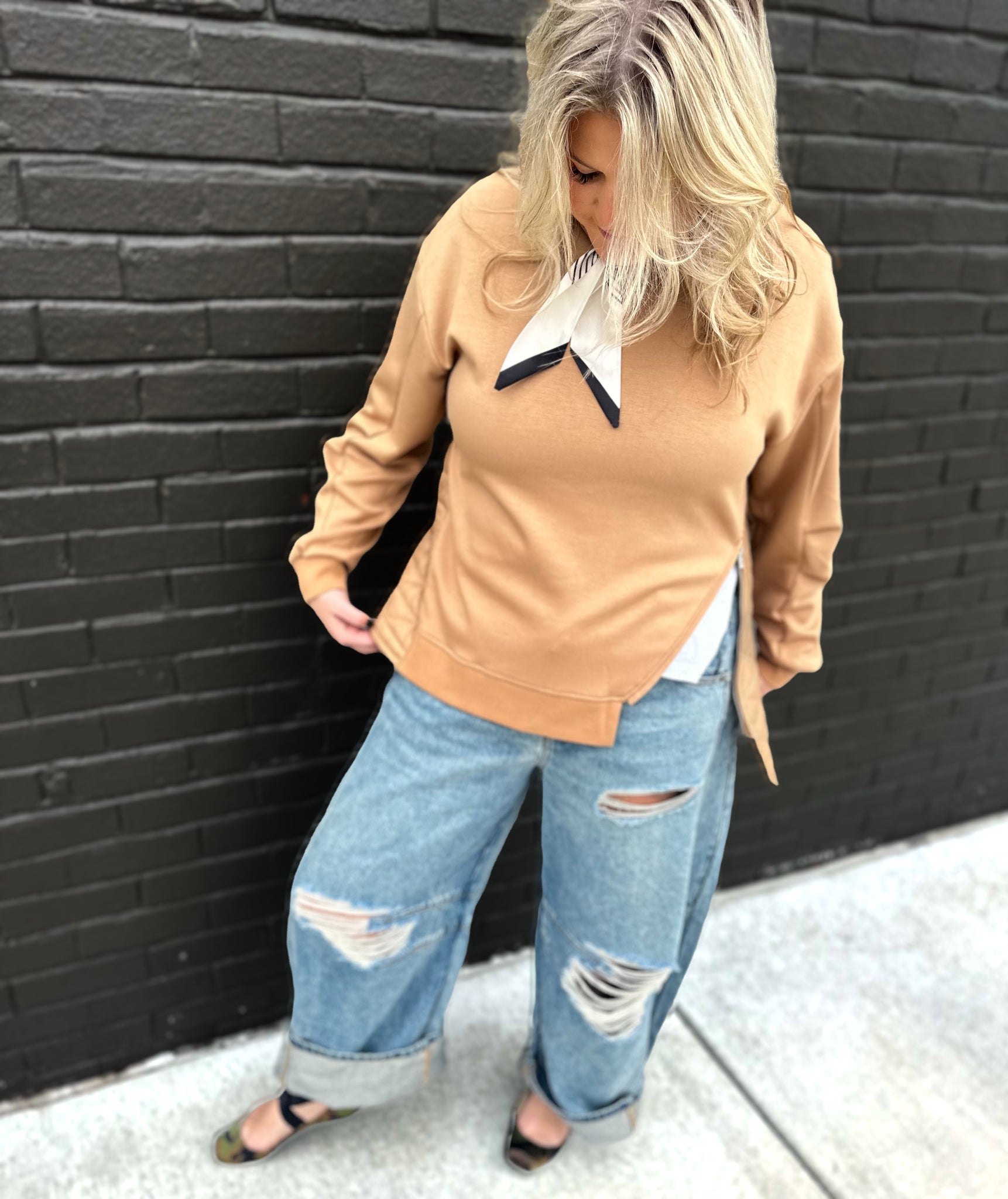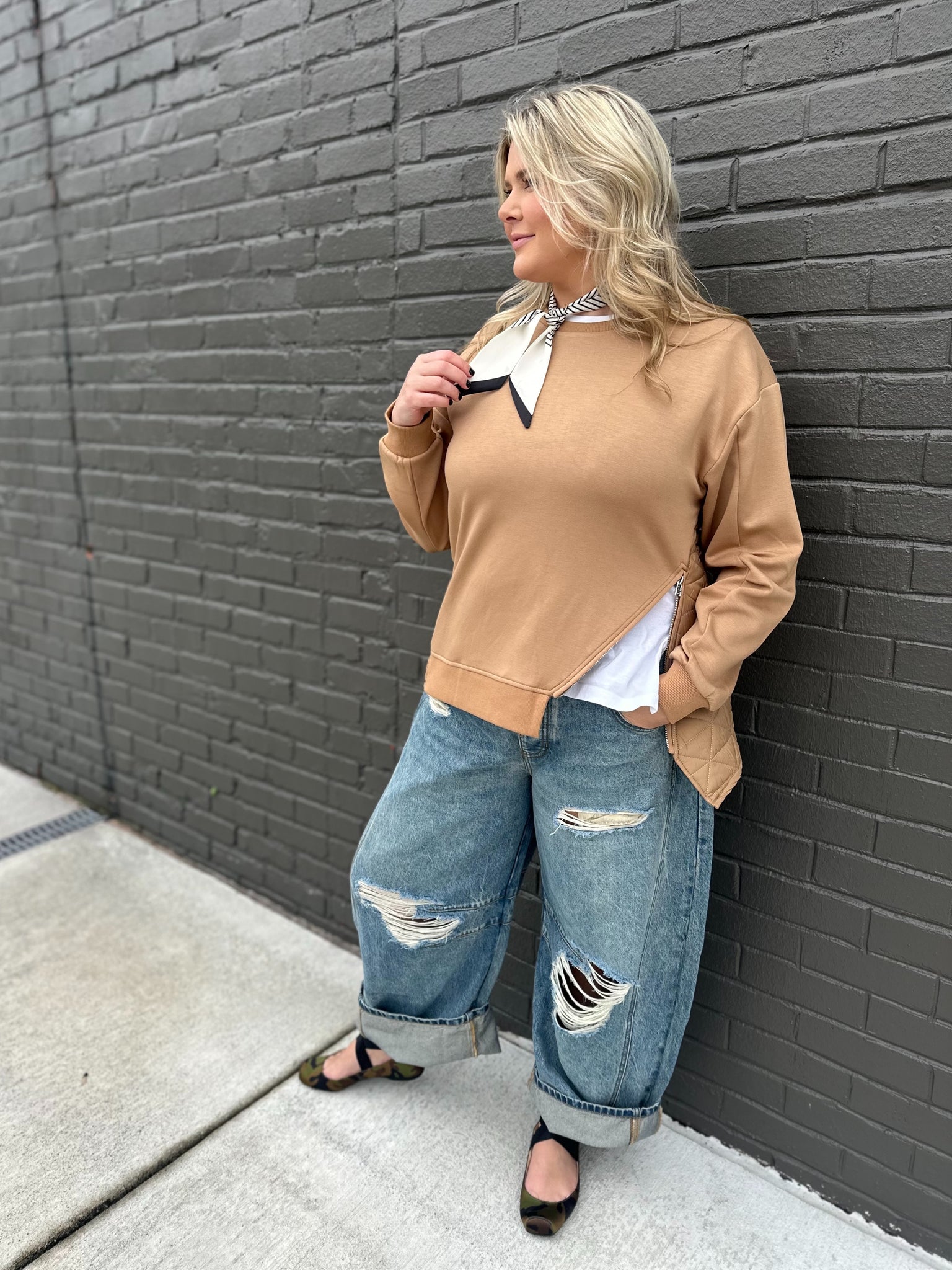 Stay cozy and chic this fall with the Coco Pullover, featuring a unique puffy down back that adds a trendy twist to a classic beige design. The playful zipper detail not only amps up the style but also lets you customize your look with ease. Crafted from a comfy blend of 55% cotton, 40% polyester, and 5% spandex, this pullover offers the perfect stretch and softness for all-day wear. Easy to pull on and perfect for layering, it’s your go-to piece for cool-weather adventures and casual outings where comfort meets flair.