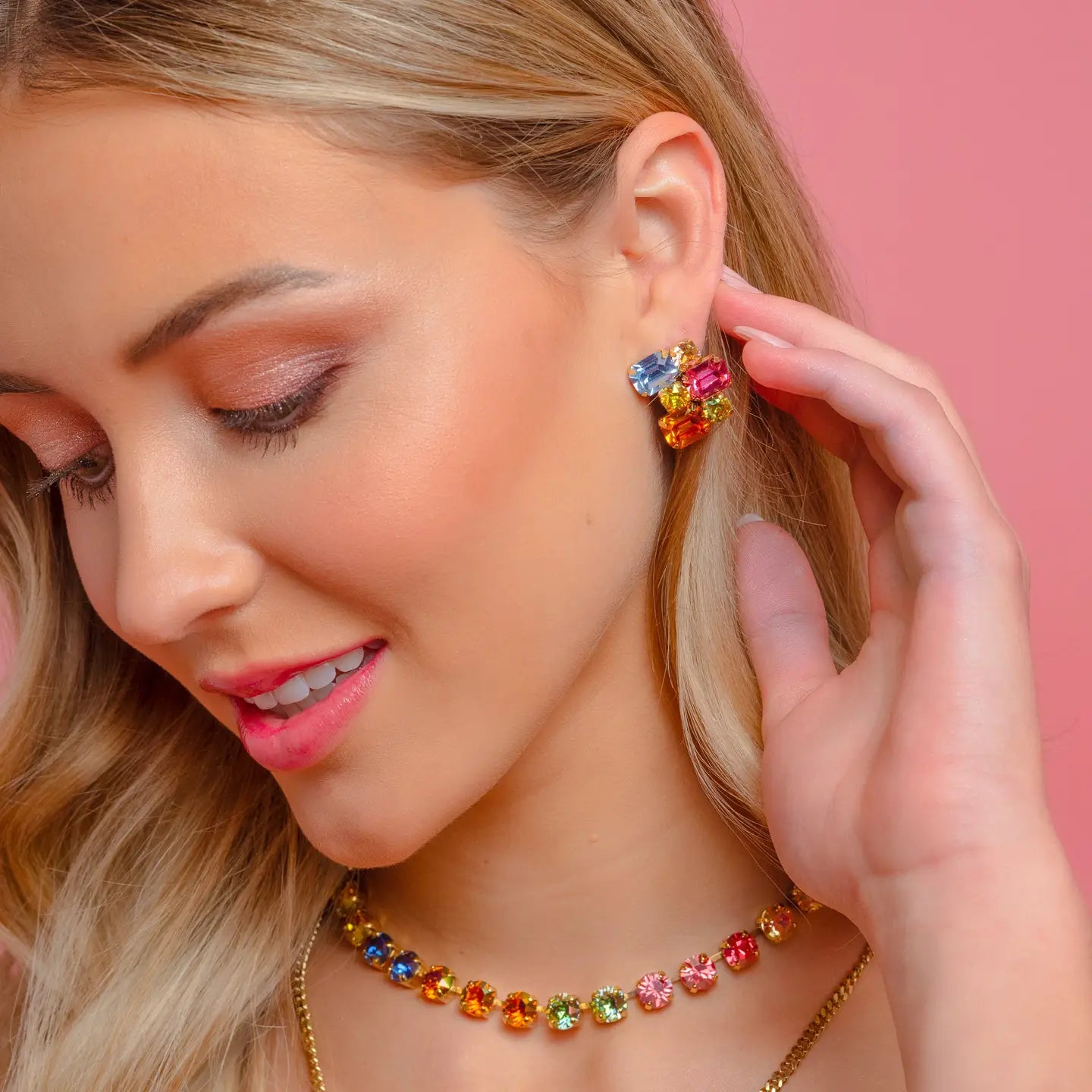 Add a touch of glam to your look with the Blaze Earrings in Pink! These charming .75" beauties combine light gold plated brass with sparkling crystals that catch the light from every angle. Perfect for both everyday sparkle and special occasions, they effortlessly brighten any outfit. Crafted with care in Canada, they promise durability and lasting shine so you can sparkle worry-free for years. Whether you’re heading out with friends or adding a splash of fun to your day, these earrings are your new go-to for instant style magic. Shine on and turn heads wherever you go!