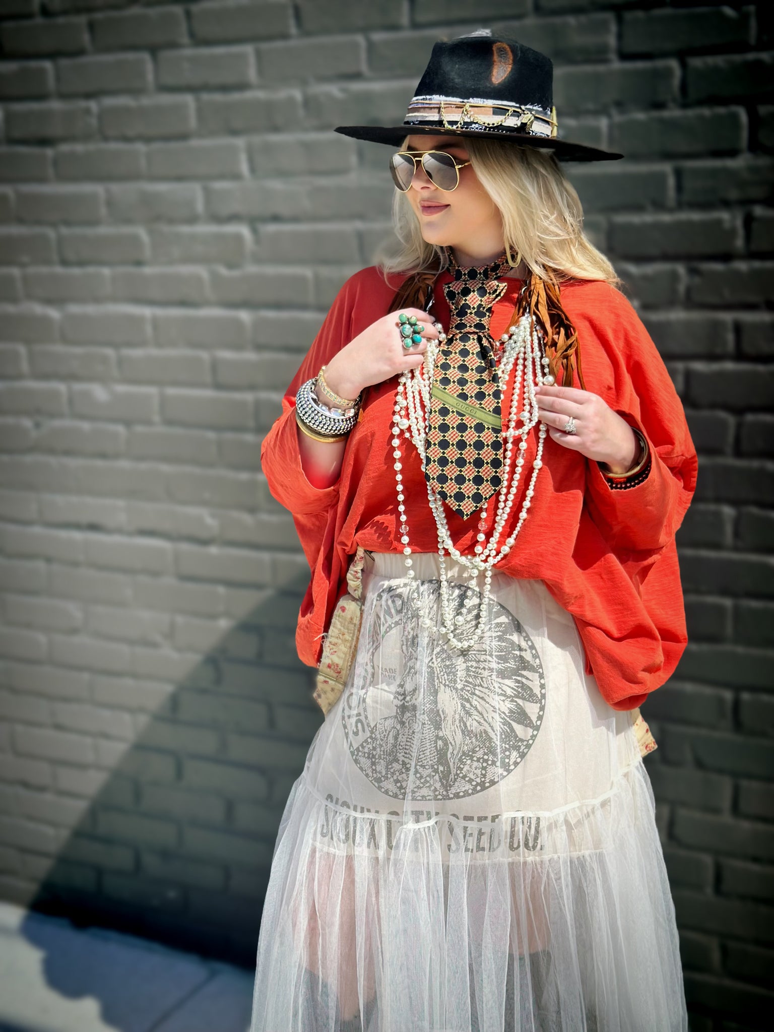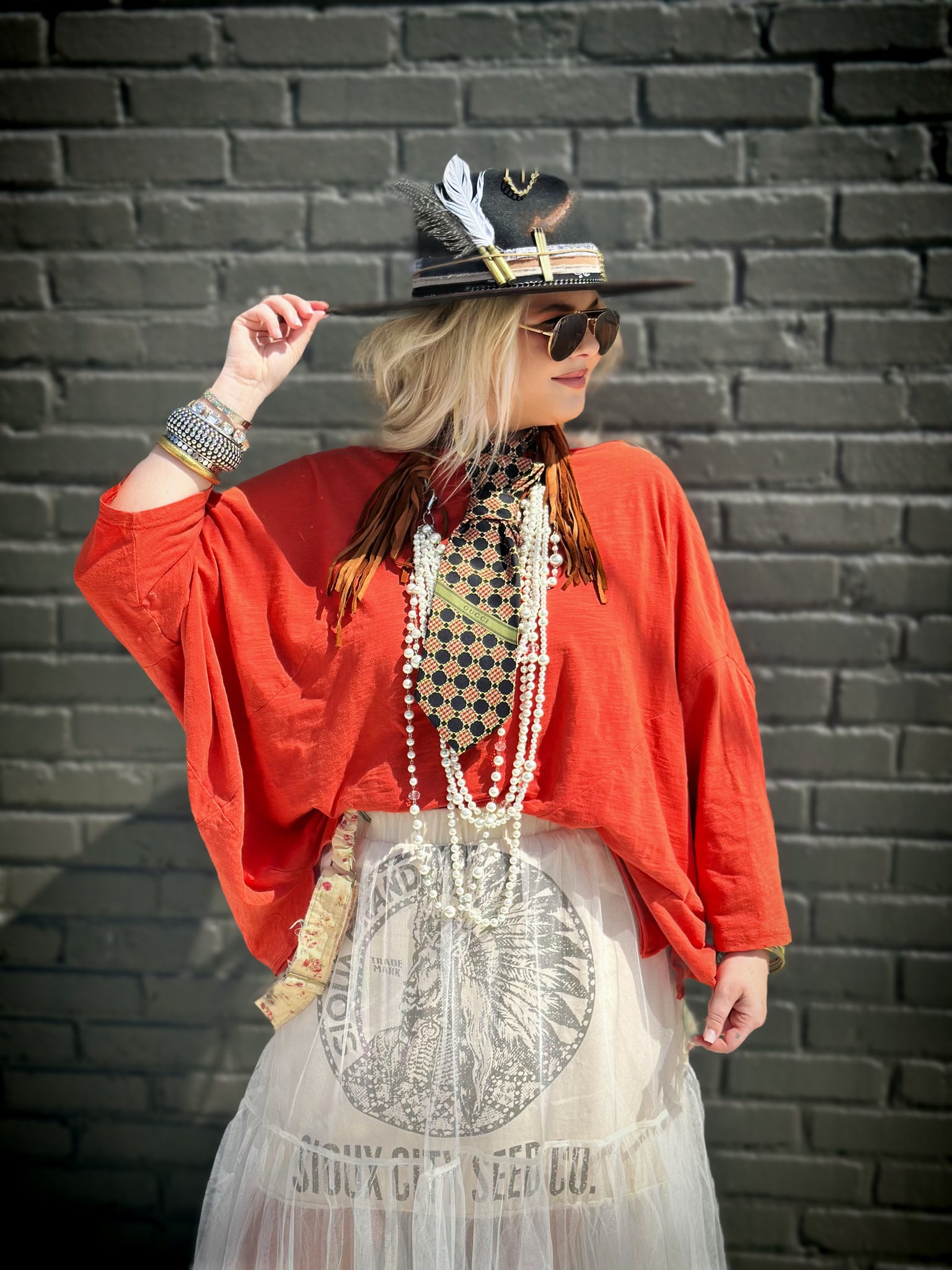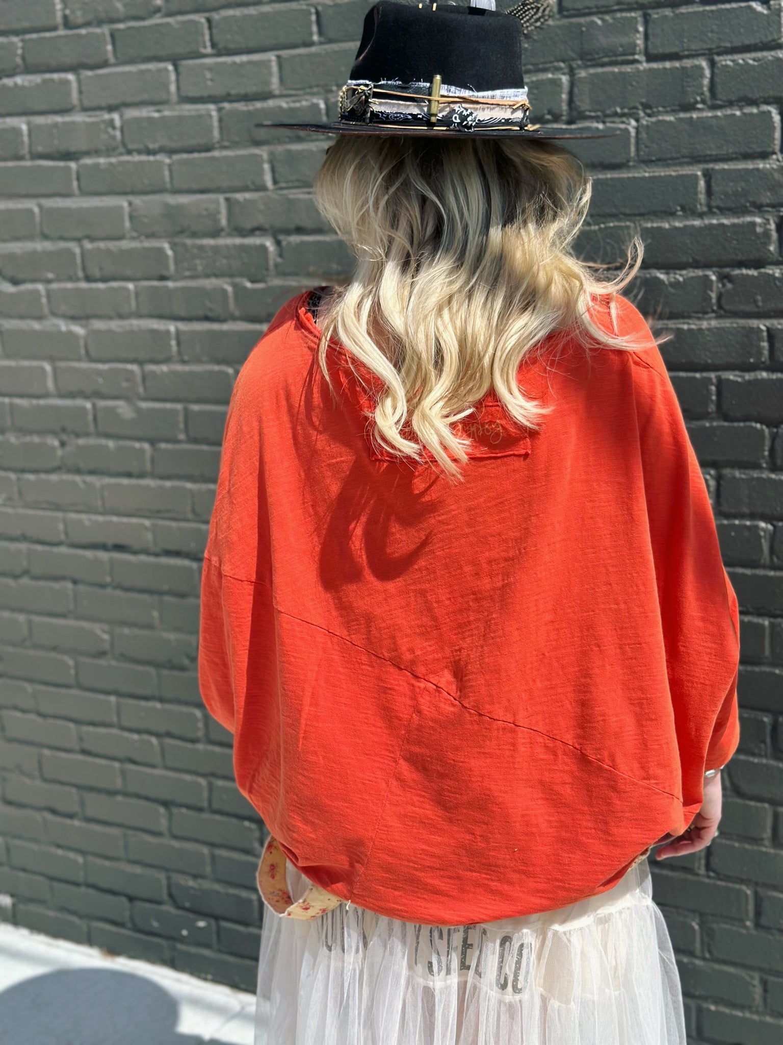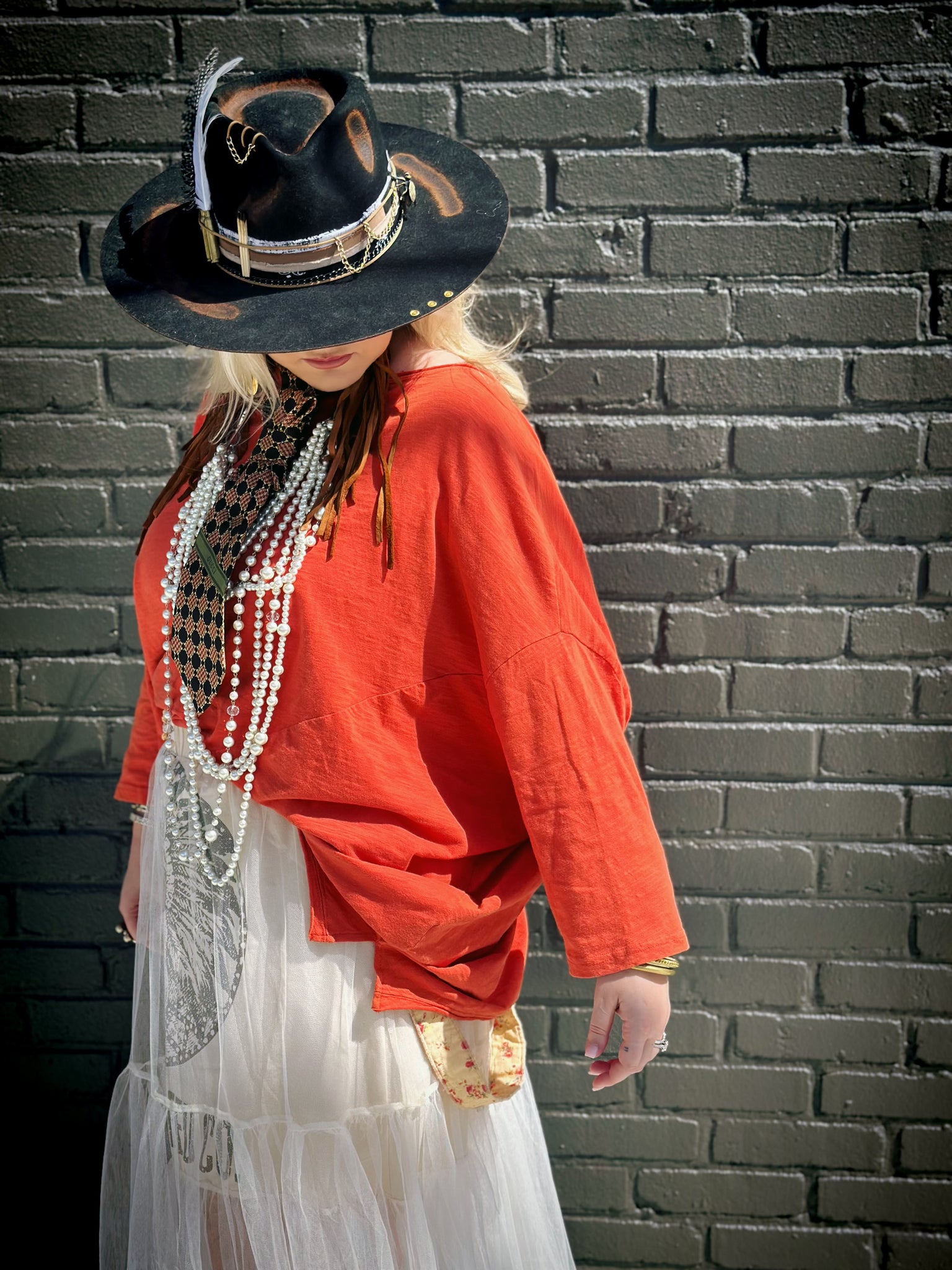 Effortless elegance meets timeless style with the Days In The Sun Top. This bestselling kimono-style piece features relaxed, oversized proportions and three-quarter length sleeves that drape beautifully. The warm vintage citrus hue brings a sun-kissed glow to any wardrobe, perfect for layering or wearing solo. A versatile staple that transitions seamlessly from season to season.