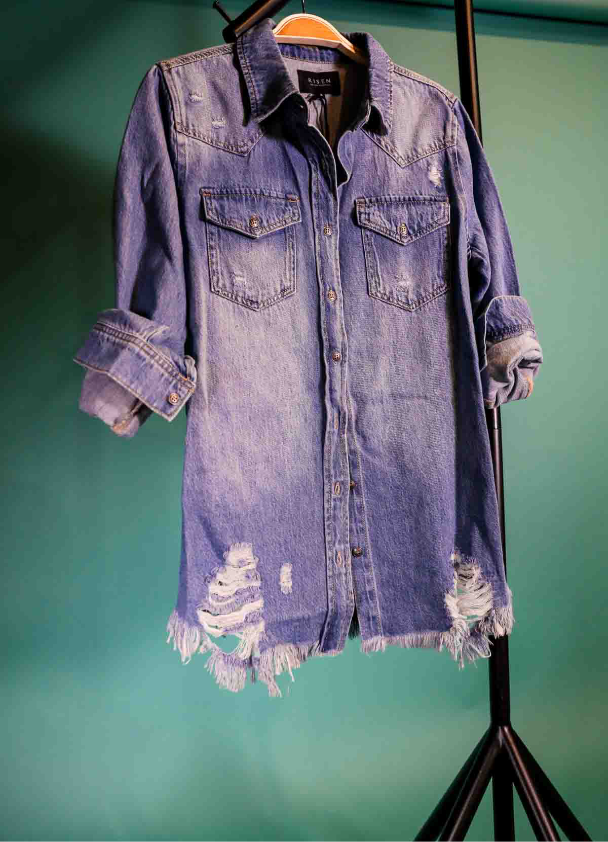 Add a touch of quirkiness to your wardrobe with this fresh cut denim top, perfect for any season! Made of 100% cotton, it's a versatile piece that can be layered or worn with any outfit. Don't miss out on this unique and high-quality addition to your closet!