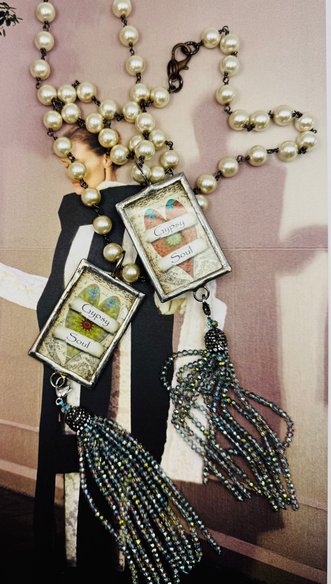 "Unleash your inner wanderlust with our Gypsy Soul Necklace. Embrace a bohemian vibe with the beaded tassel pendant, perfect for adding a touch of whimsy to any outfit. Follow your free-spirited heart and let your soul shine with this unique statement piece. (No bad vibes included!)"