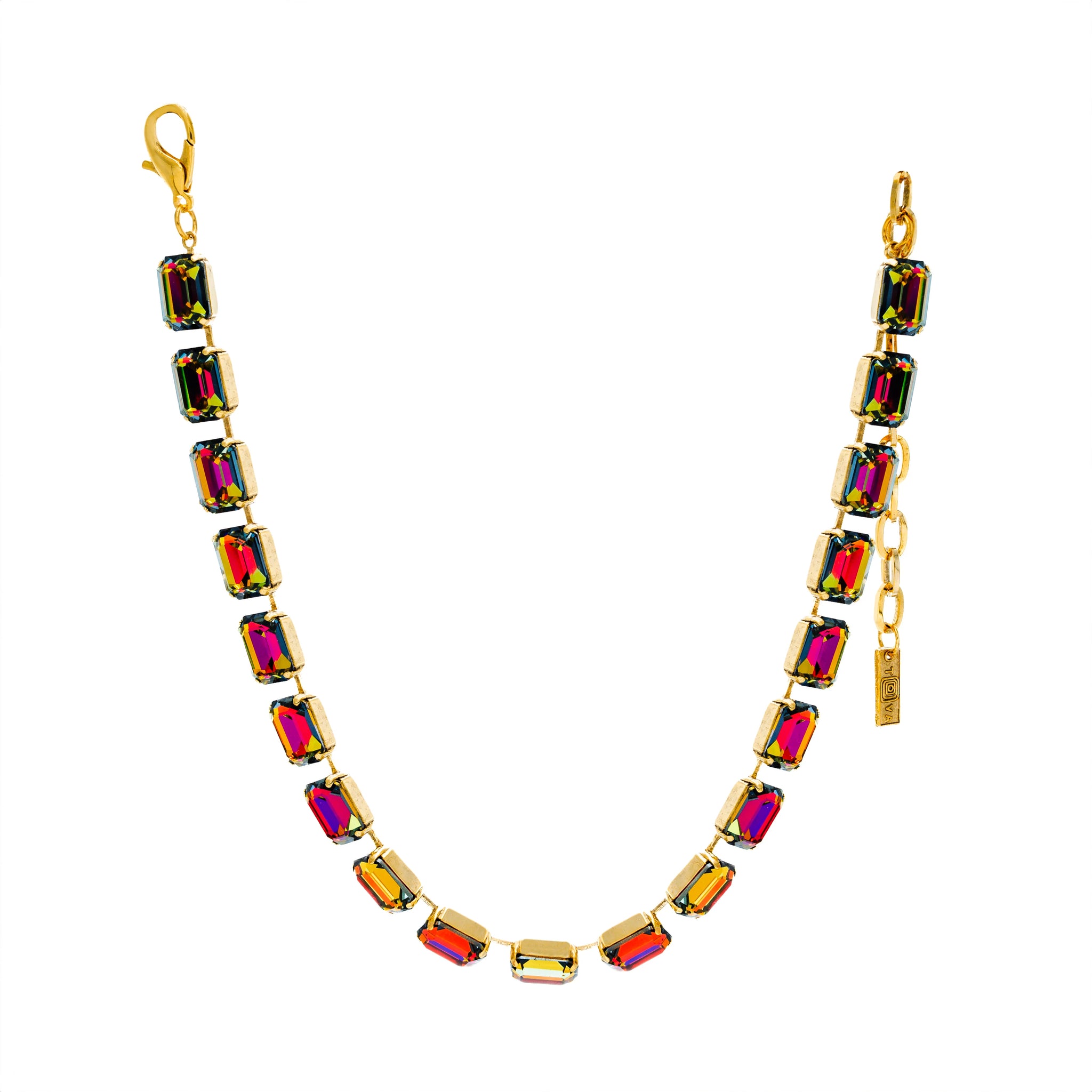 Bring some sparkle to your look with the Jabari Necklace in Volcano! This eye-catching and dazzling piece offers an antique gold plated brass base metal with high-quality crystals, and an adjustable length of 12.25" with a 3.5" extension. Made in Canada, this fabulous piece is sure to jazz up any outfit!