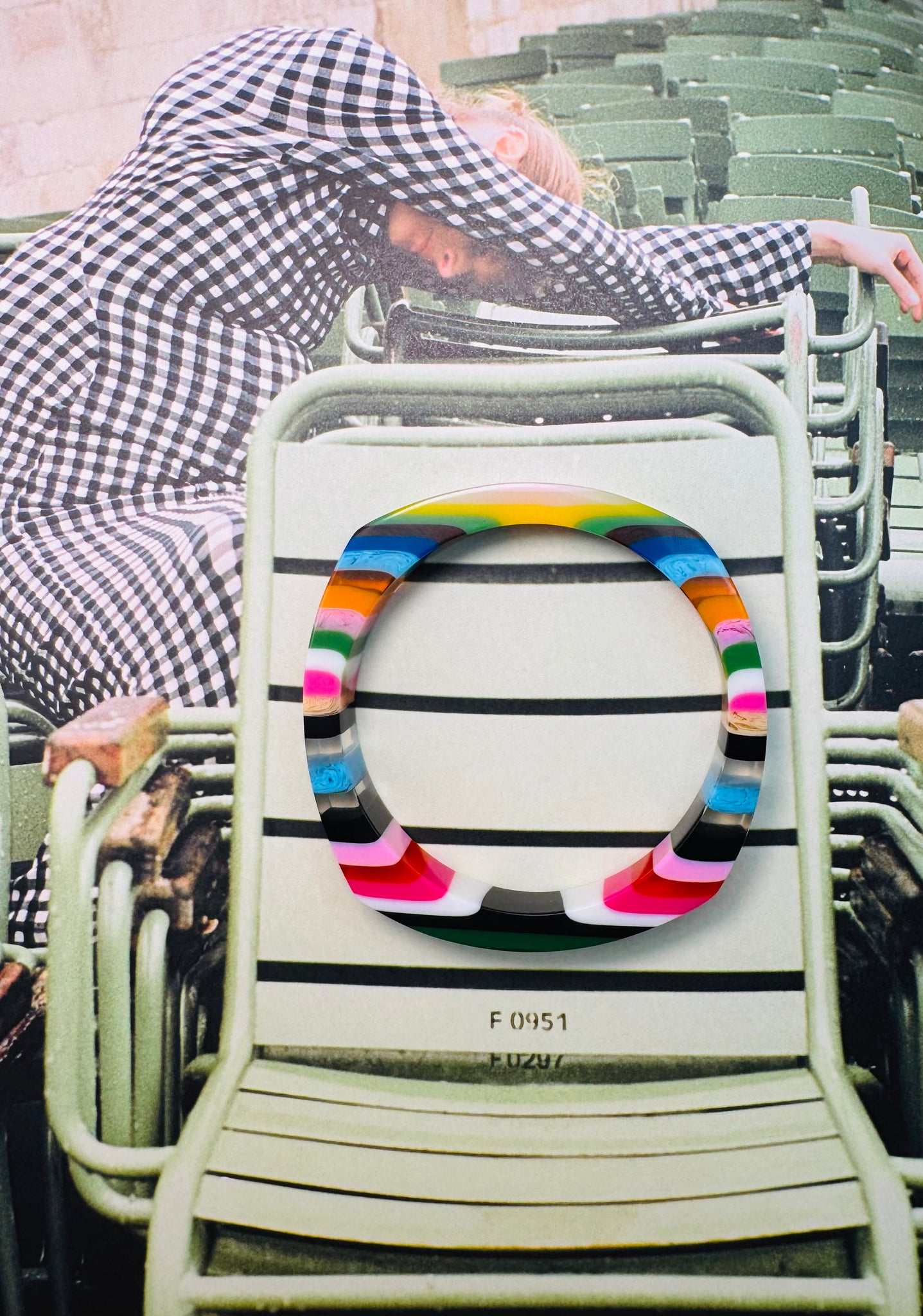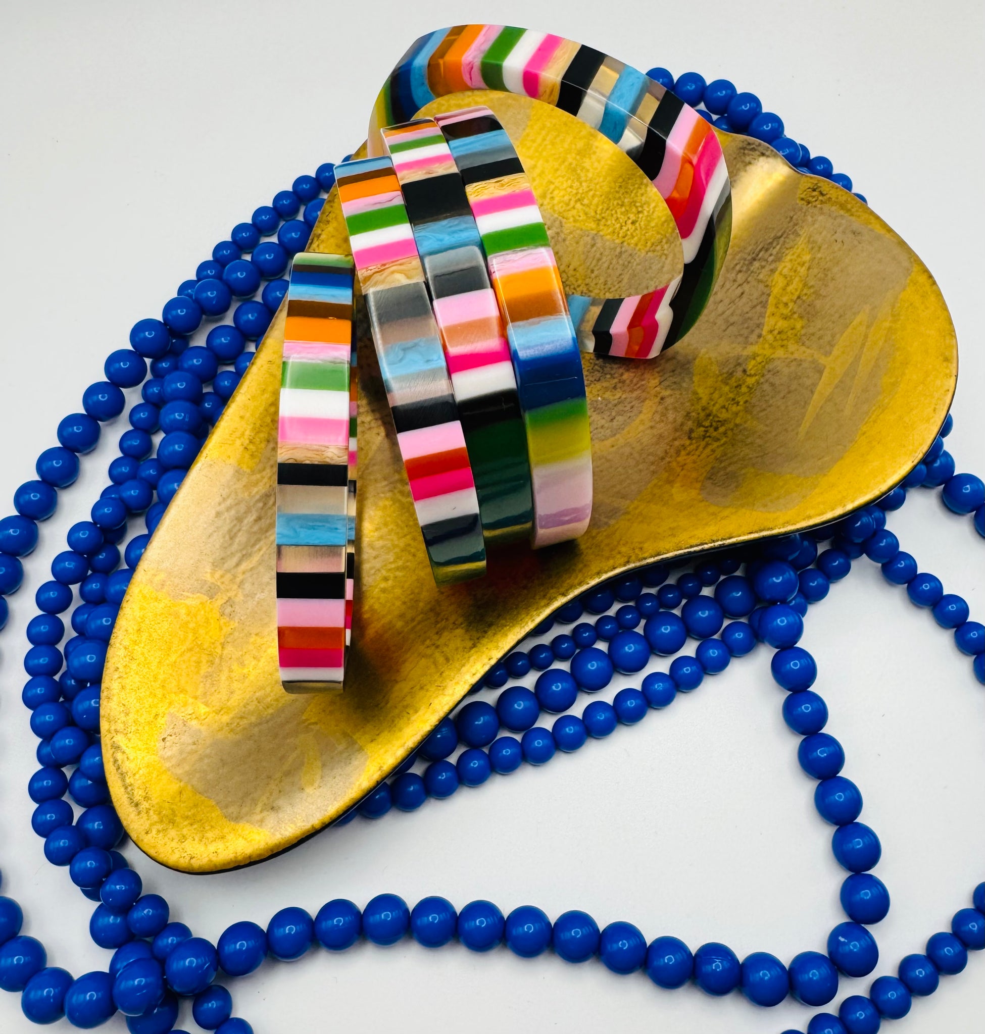 Add some playful color to your style with the Lucy Bangle! This colorful striped bangle is versatile for any season and outfit. Mix and match with other bracelets and bangles for a fun and trendy look. Brighten up your wardrobe with the Lucy Bangle!