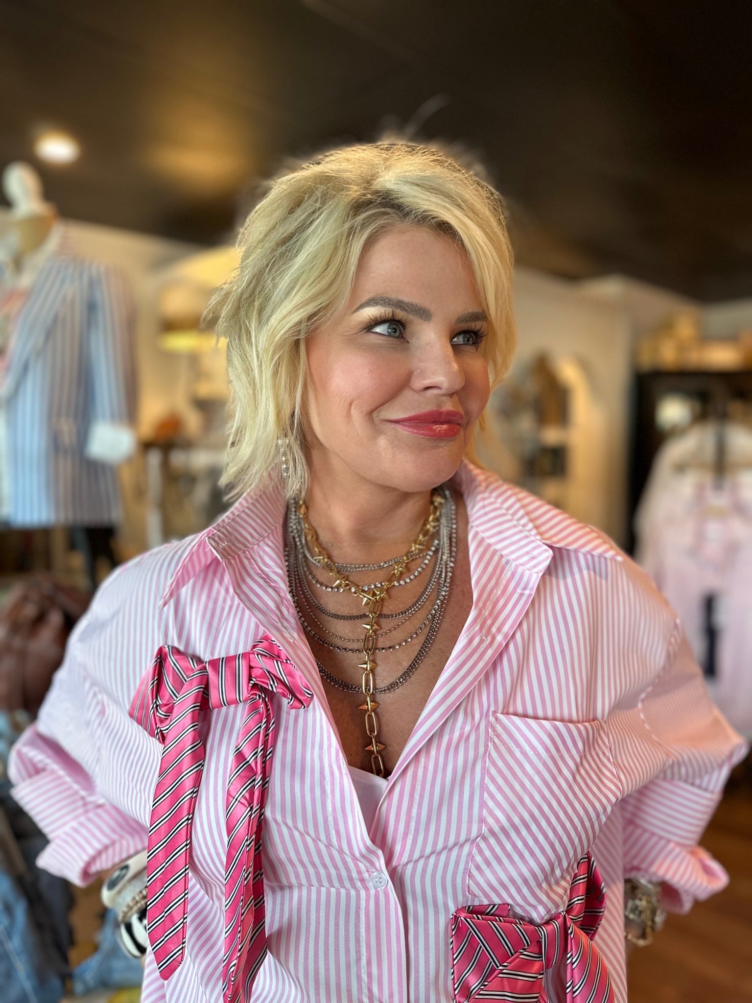 Add a touch of vintage glamour with the Milan Necklace. The antique gold plating and high quality crystals bring a touch of elegance to any outfit. With a 14" length, 7" drop, and 3" extension, this brass-based necklace is versatile and made to last. Handcrafted in Canada.