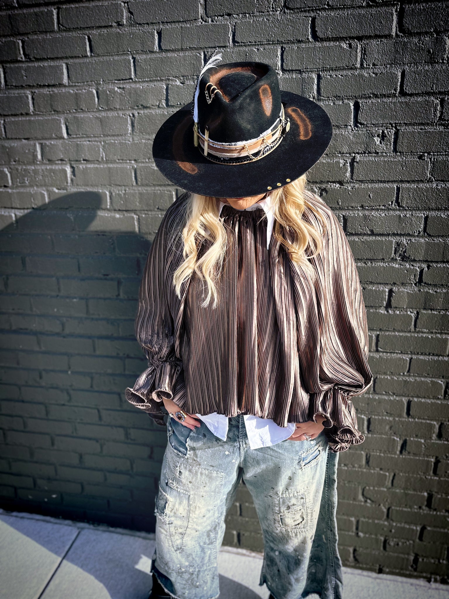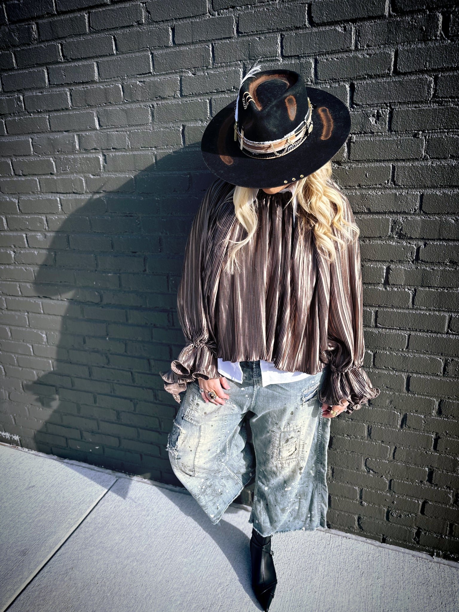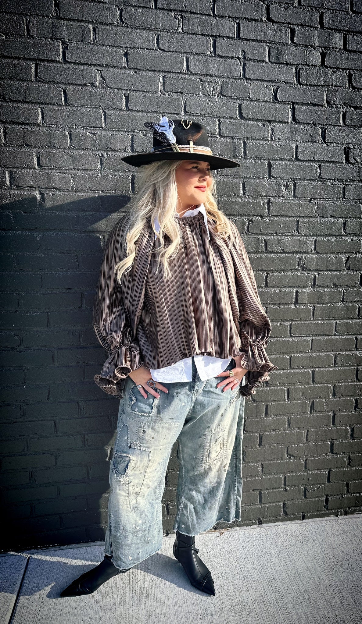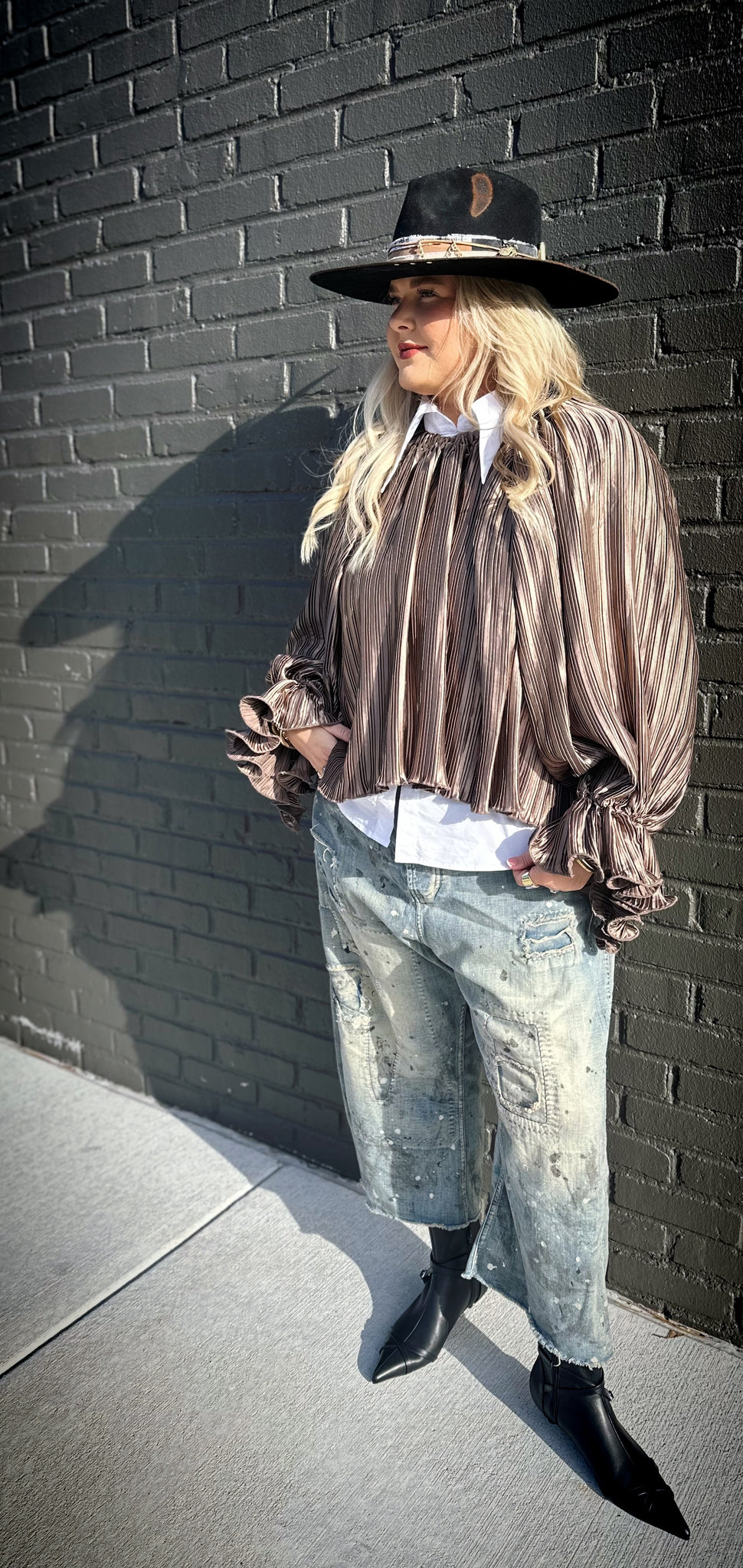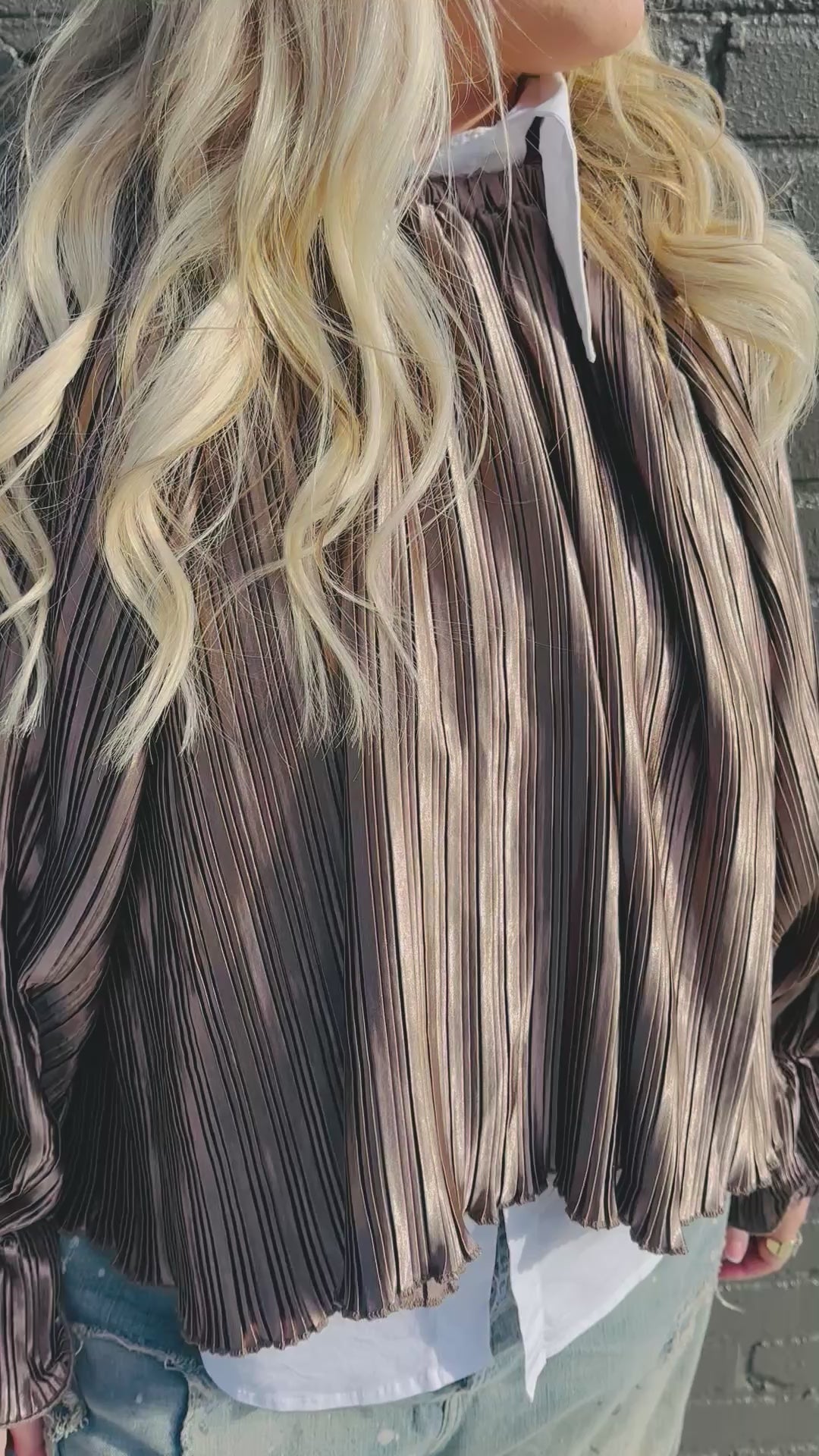 Nick of Time Top in Bronze is the statement piece your wardrobe's been waiting for. This playful pleated ruffle top features an elastic neckline for effortless comfort and charming ruffle sleeves that add movement and dimension. The angled cut creates a flattering silhouette that works beautifully for both casual outings and dressed-up occasions. The rich bronze tone is versatile enough to pair with your favorite jeans or layer under jackets. Whether you're rushing to catch the moment or taking your time to shine, this top delivers style that never goes out of fashion.