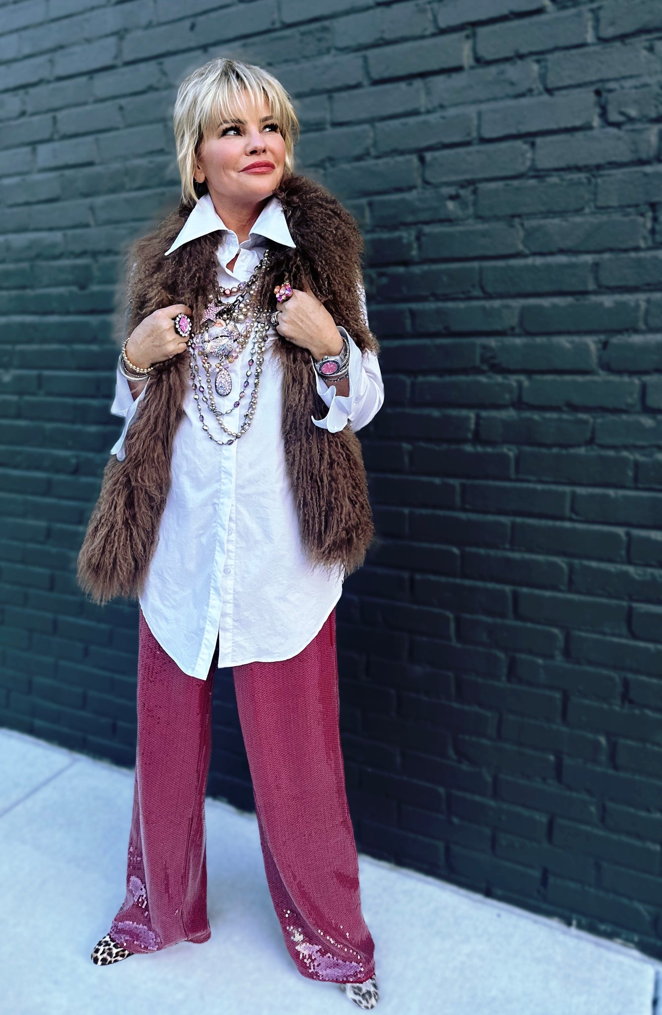 Step into the spotlight with these show-stopping Nightcap Sequin Pants in burgundy. Covered in shimmering sequins that catch the light with every move, these pants deliver serious glamour without sacrificing comfort. The fully lined construction keeps you feeling smooth and supported, while the elastic waistband with drawstring ensures a perfect fit that moves with you all night long. Whether you're dancing at a party, hitting the town, or just want to add some sparkle to your everyday look, these sequin pants are your ticket to turning heads and feeling fabulous.