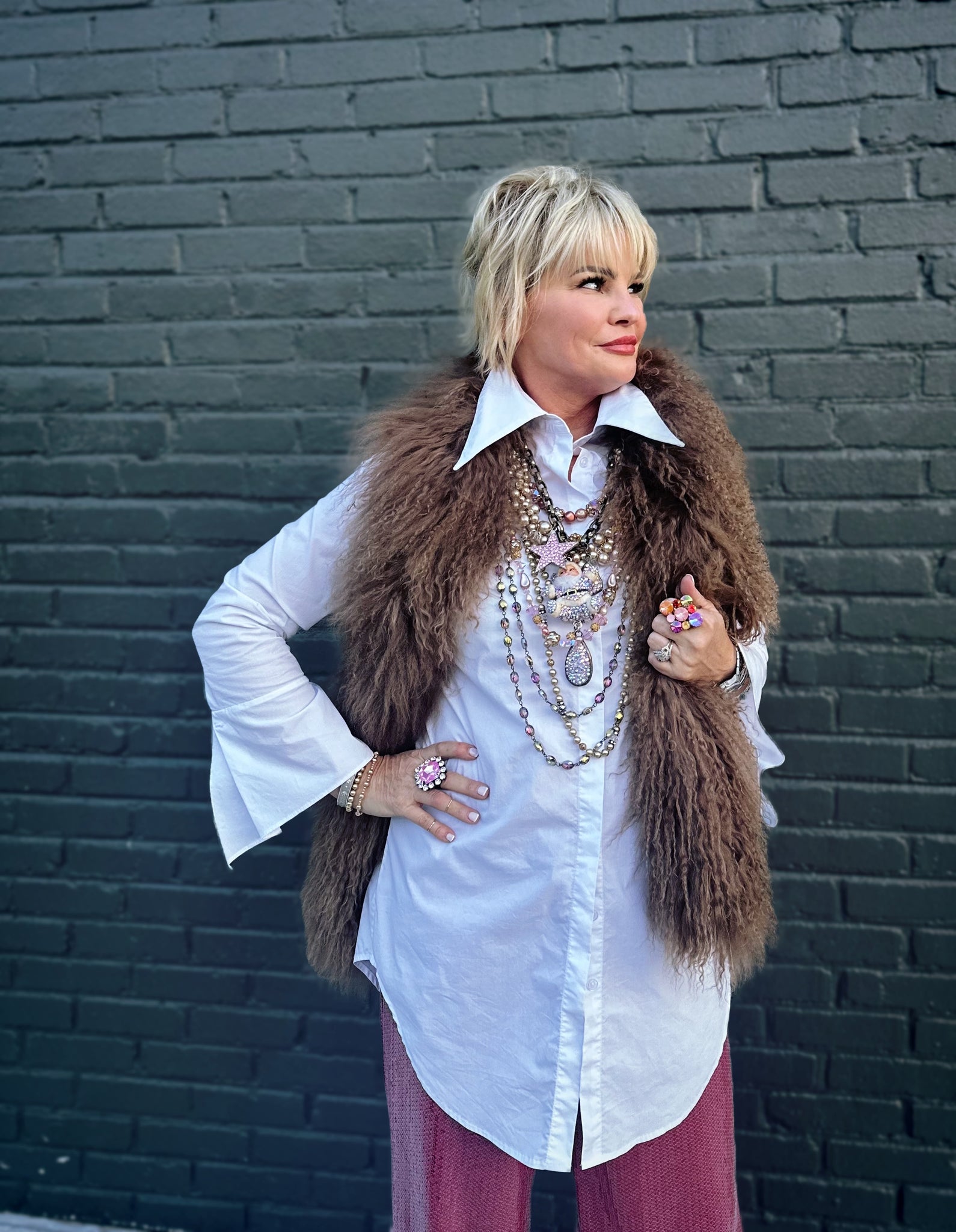 "Embrace your daring side with the Pinky St. Nicky Necklace. This unique piece features iridescent beads, multi strands, and whimsical Santa design. The pink rhinestone toggles add a touch of whimsy, while the beige and gold colors exude confidence. Perfect for adding a bold touch to any outfit!"