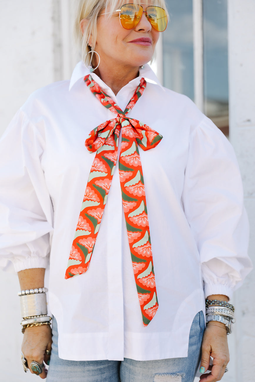 Designed by Lady the Brand, the Melon Twilly is an extra-long accessory measuring over 6 feet, perfect for adding a splash of style wherever you choose. Wrap it around your neck for a chic scarf look, tie it around your waist as a playful belt, or even use it as a headband or bag accent—the possibilities are endless! Its vibrant design and versatile length make it a fun and fashionable way to elevate any outfit with a touch of personality. Let your creativity run wild with this must-have twilly!