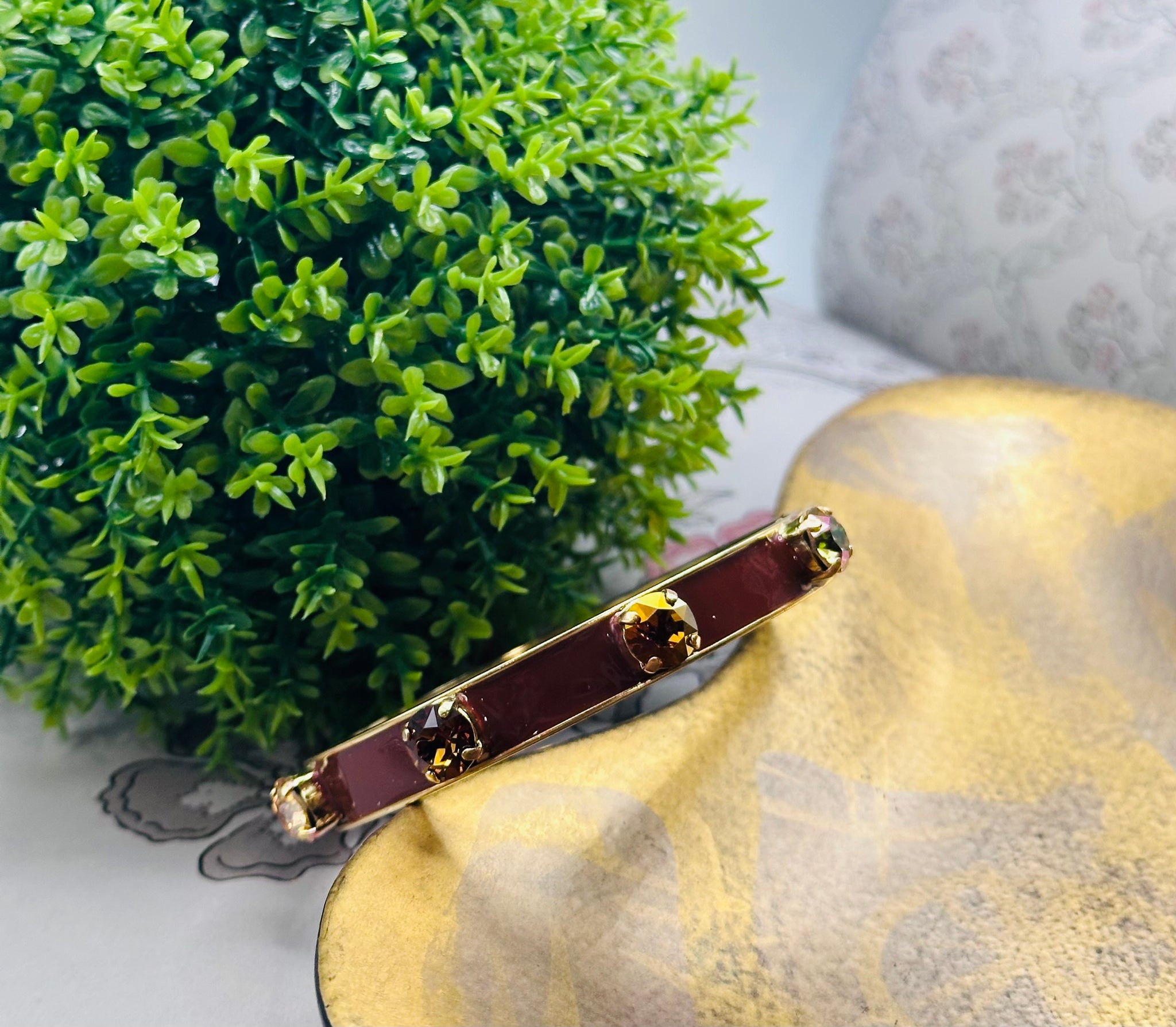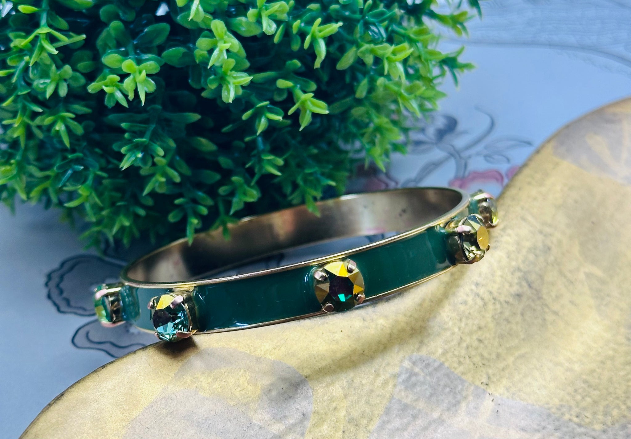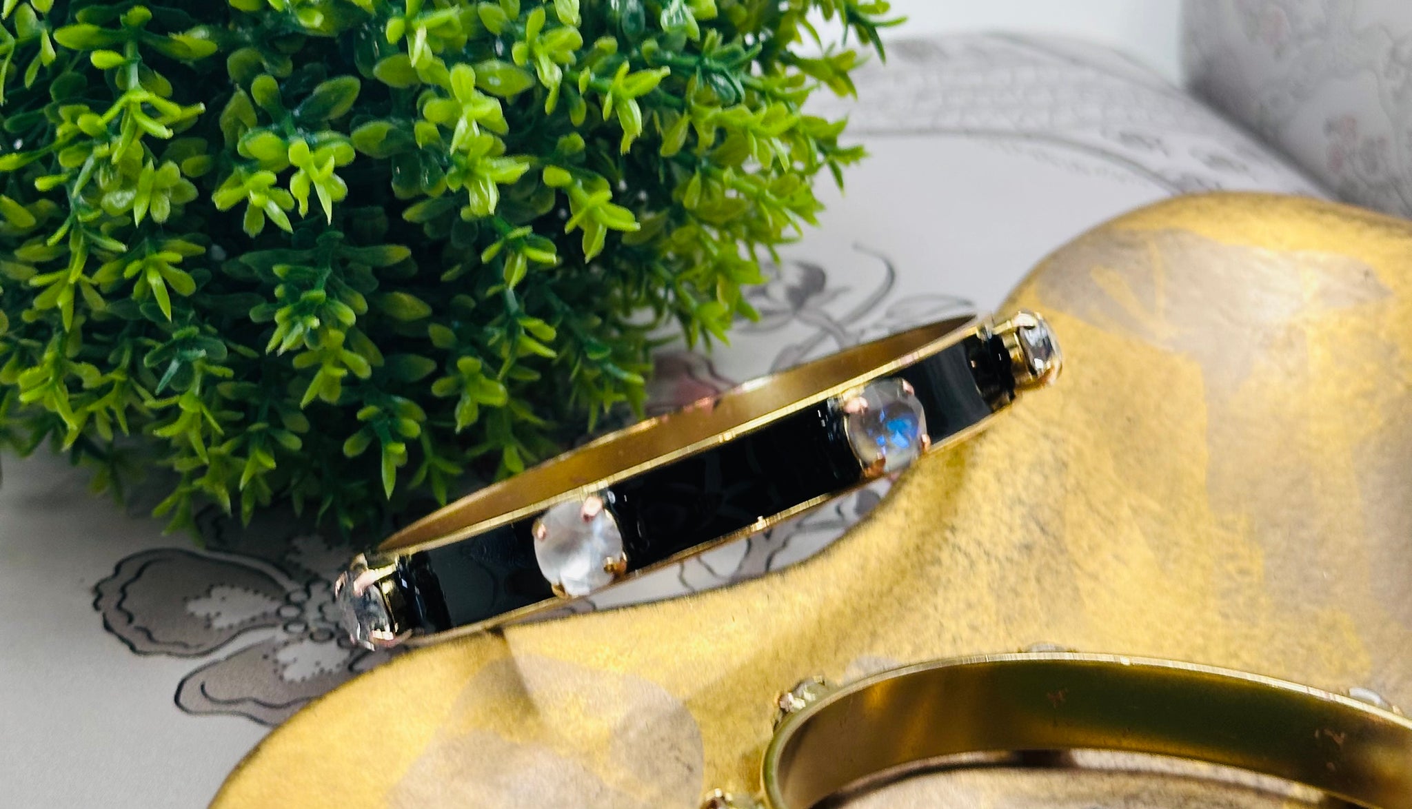 Add a touch of sparkle and charm to your look with the Sammy Bangles in Midnight Express. These playful bangles feature a sturdy antique gold-plated brass base, dazzling high-quality crystals, and hand-painted enamel details that bring a pop of color and personality to any outfit. Perfect for stacking or wearing solo, they’re your new go-to for effortless style and fun flair. With an inner circumference of 20 cm (2.5" inner diameter), this bangle comfortably fits most wrists, making it easy to mix, match, and express your unique vibe every day. Whether dressing up a casual look or adding that final sparkle to a special occasion, these bangles shine with lively