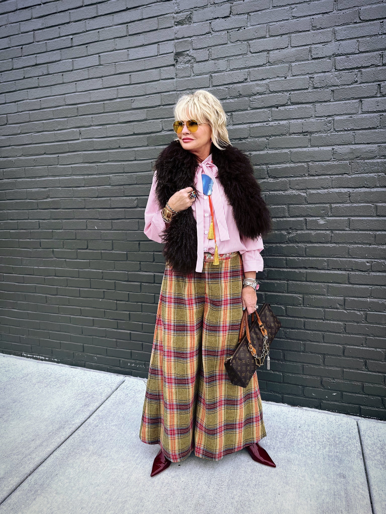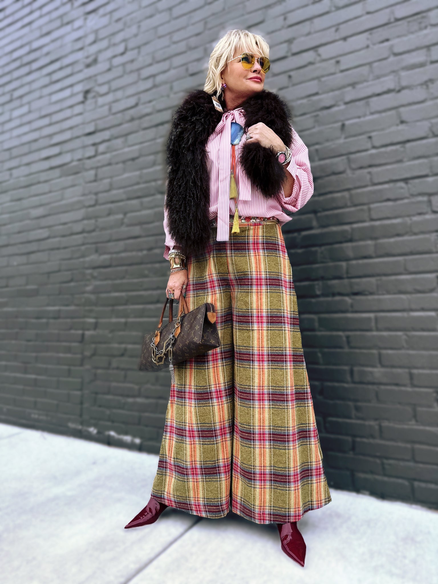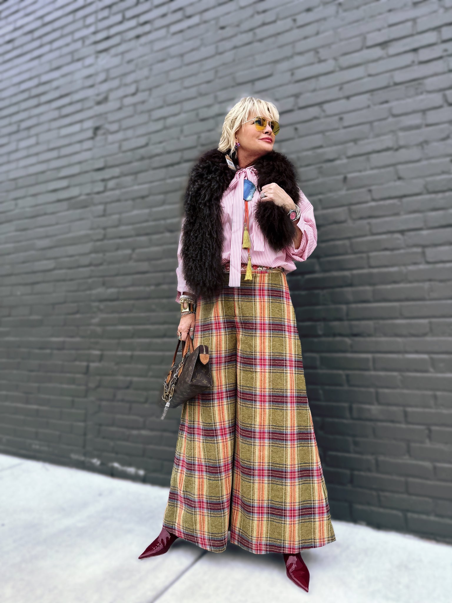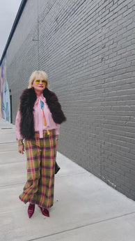 Step into style and comfort with our Seasons Pants, featuring a charming olive plaid combo that effortlessly blends classic and contemporary vibes. These zip flare pants are detailed with an embroidered trim on the front waistband, adding a playful touch to your outfit. Crafted from a soft, durable blend of 70% cotton and 30% polyester, they promise all-day comfort with just the right amount of stretch. Perfect for a casual day out or turning heads at your next event, these pants keep your look fresh and fun. For best care, dry clean only to maintain their vibrant color and crisp fit.