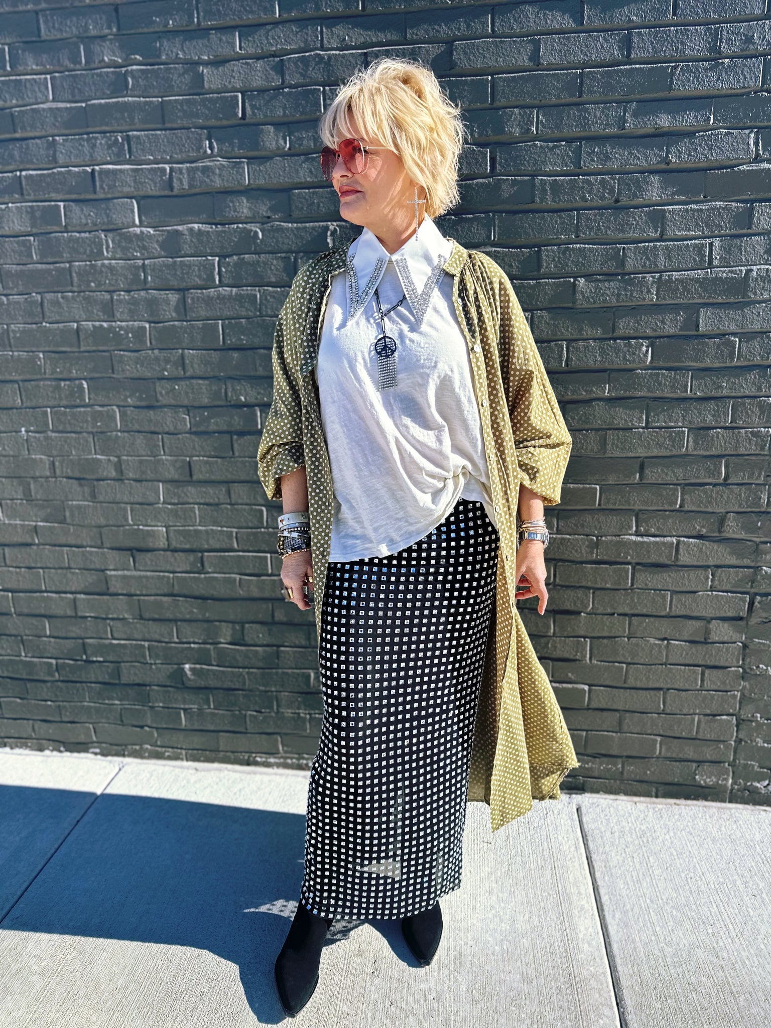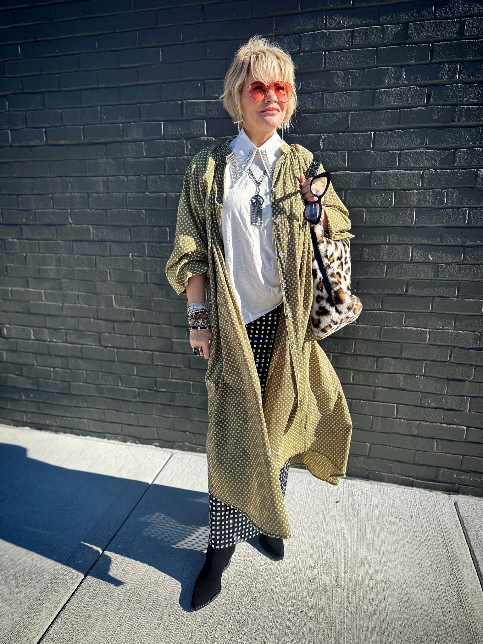 Introducing the Sweet Nothings Dress in Olive—the effortless wardrobe essential that's stealing hearts everywhere. This best-selling style features a relaxed button-up silhouette that's perfect for layering or wearing solo. Crafted from ultra-lightweight, breathable fabric, it drapes beautifully with a flowy, flattering fit that moves with you throughout your day. Whether you're dressing it up with accessories or keeping it casual, this versatile duster delivers comfort without compromise. The soft olive tone pairs seamlessly with everything in your closet, making it the go-to piece you'll reach for again and again. Simple, chic, and undeniably wearable—this is the dress that does it all.
