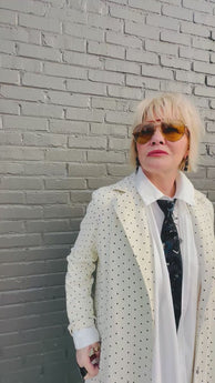 This lightweight longline trench coat pairs whimsical polka dots with everyday practicality. Tailored collar, front buttons, and side pockets keep you organized while the flattering elongated cut works with any outfit—casual sneakers or fancy heels. The playful dot pattern adds personality without overwhelming your look, making it the perfect layering piece for unpredictable weather or those moments when you need an instant style upgrade. Throw it over jeans for weekend errands, dress it up with a skirt for brunch, or wear it solo as a statement piece. A versatile wardrobe staple that proves you can look polished and feel completely comfortable at the same time.