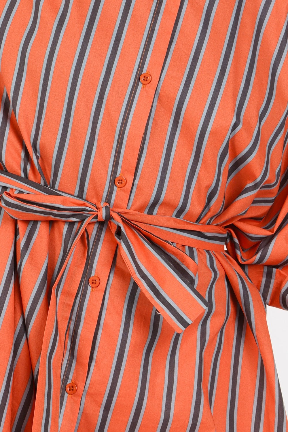 This playful A-line shirt dress is crafted from a soft cotton blend that feels as good as it looks, featuring a lively contrast stripe pattern that adds a fresh twist to your wardrobe. Designed with a timeless collar and a front button closure, it offers both classic charm and easy wearability. The long dolman sleeves, completed with double button cuffs, bring a relaxed yet chic vibe, while the self waist tie lets you customize your silhouette for a flattering fit. With its flattering midi length and regular fit, this dress effortlessly balances comfort and style for any occasion. Made from a durable mix of 65% cotton and 35% polyester, it's designed to keep its shape and vibrant colors wash after wash. Caring for it is simple and eco-friendly—just wash on a low temperature with a delicate spin cycle to preserve its fabric and reduce energy use. Plus, the one-size-fits-all design makes it an easy, stylish choice for everyone looking to add a playful touch to their closet.