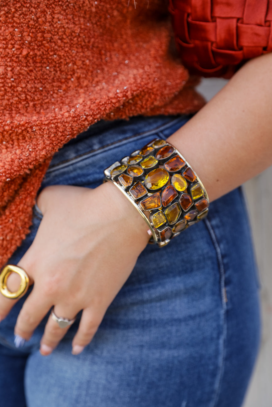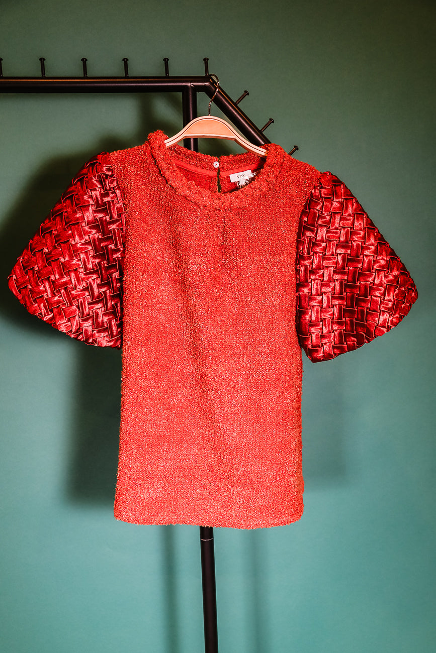 Step into autumn with the Wayward Top, your new go-to for cozy celebrations and crisp-weather style. This rust-colored delight boasts a playful button closure at the neck, complemented by a charming braided neckline detail that adds an extra dose of personality. The silky cross-patterned sleeves catch the light with subtle sparkles, bringing a festive shimmer to your look. Crafted from a soft, stretchy blend of 90% polyester, 9% viscose, and 1% spandex, its comfortable A-line fit moves with you from pumpkin patch to holiday party. The Wayward Top effortlessly blends warmth, sparkle, and playful design for your season’s standout style.